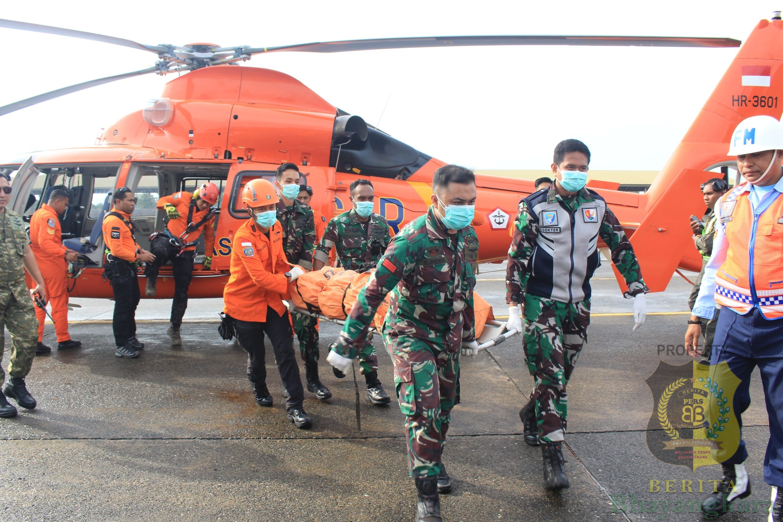 Satu jenazah korban jatuhnya pesawat ATR 42-500 berhasil dievakuasi menggunakan helikopter Rescue Basarnas Dauphin AS-365 N3