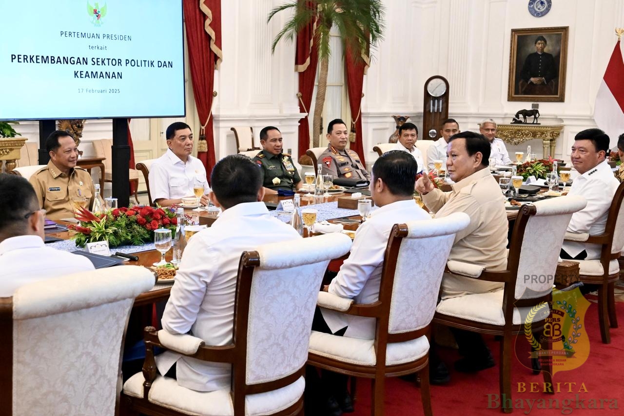 Jakarta, BeritaBhayangkara – Panglima TNI Jenderal TNI Agus Subiyanto menghadiri Rapat Terbatas (Ratas) sekaligus makan siang bersama Presiden RI Prabowo Subianto dan sejumlah jajaran Menteri Kabinet Merah Putih, bertempat di Istana Merdeka, Jl. Medan Merdeka Utara, Jakarta Pusat, Senin (17/02/2025).