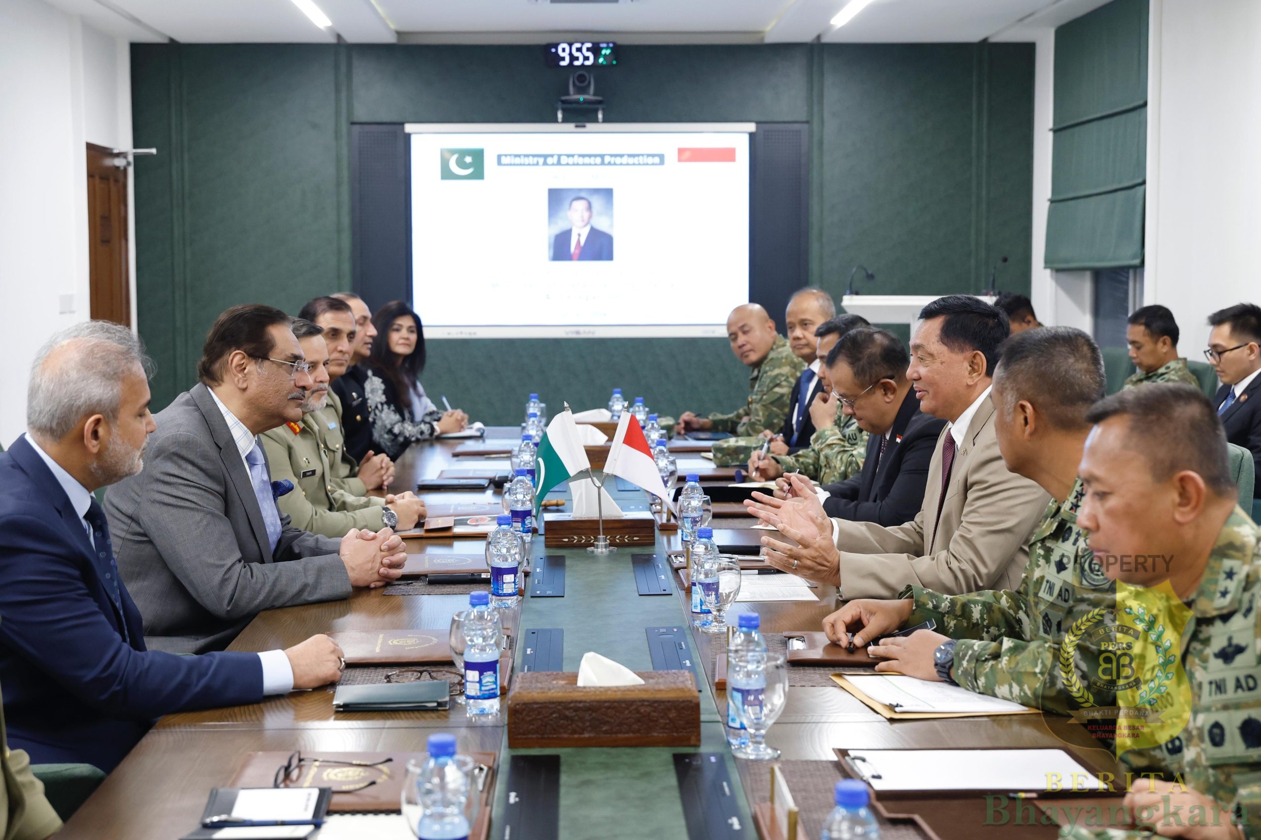 Menhan RI Sjafrie Sjamsoeddin melakukan pertemuan dengan Menteri Produksi Pertahanan Pakistan, H.E. Muhammad Raza Hayat Harraj, membahas penguatan kerjasama pertahanan, pendidikan dan pelatihan militer, serta pengembangan sumber daya manusia pertahanan, berkesempatan pula melakukan kunjungan kehormatan kepada Field Marshal Syed Asim Munir, Chief of Defence Forces (CDF) Pakistan, untuk memperkuat hubungan antara angkatan bersenjata kedua negara.