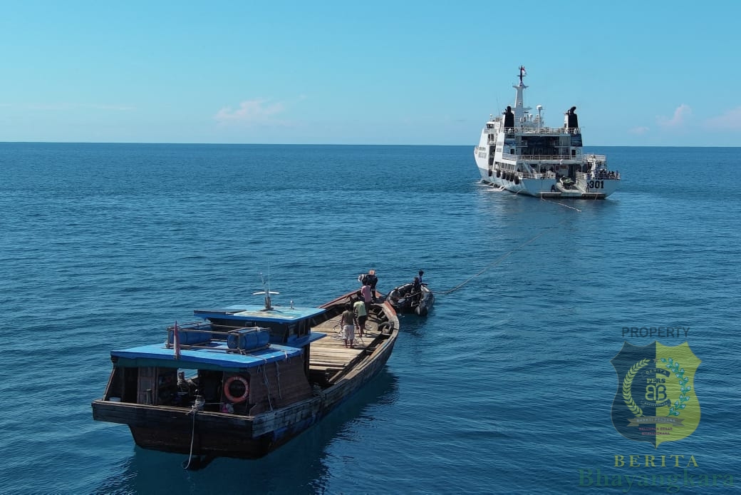 Selain pelanggaran administratif, kapal juga mengalami kerusakan mesin. Guna mencegah risiko lebih lanjut, KN. Tanjung Datu-301 melakukan proses towing terhadap KM Doa Restu Ibu Jaya menuju Batam untuk proses penyelidikan dan penanganan hukum lebih lanjut.