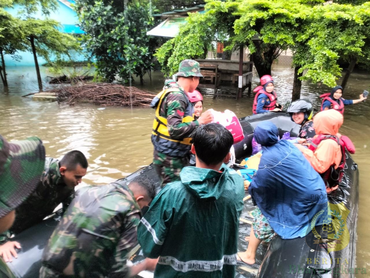Sebagai bagian dari upaya penanggulangan bencana alam banjir tersebut, telah diberangkatkan 12 personel dari Batalyon Komando 466 (Yonko 466) Komando Pasukan Gerak Cepat (Kopasgat) di bawah pimpinan Lettu Lek Adi Ilcham (Dan tim Sar). Mereka membantu mengeavakuasi warga yang terdampak banjir ke tempat yang lebih aman menggunakan dua perahu karet. Pengiriman pasukan ini merupakan bentuk respons cepat dari jajaran Koopsud II dalam mengatasi dampak banjir yang melanda wilayah tersebut.