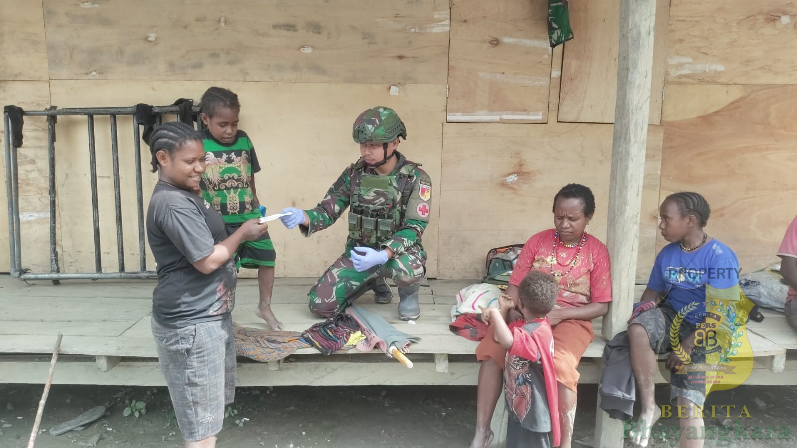 Puncak Jaya, BeritaBhayangkara – Satgas Yonif 715/Mtl Pos Ramil Yambi melaksanakan kegiatan Pelayanan Kesehatan (Yankes) gratis kepada warga binaan Kampung Pos Ramil Yambi Puncak Jaya, Papua, Senin (17/02/2025).
