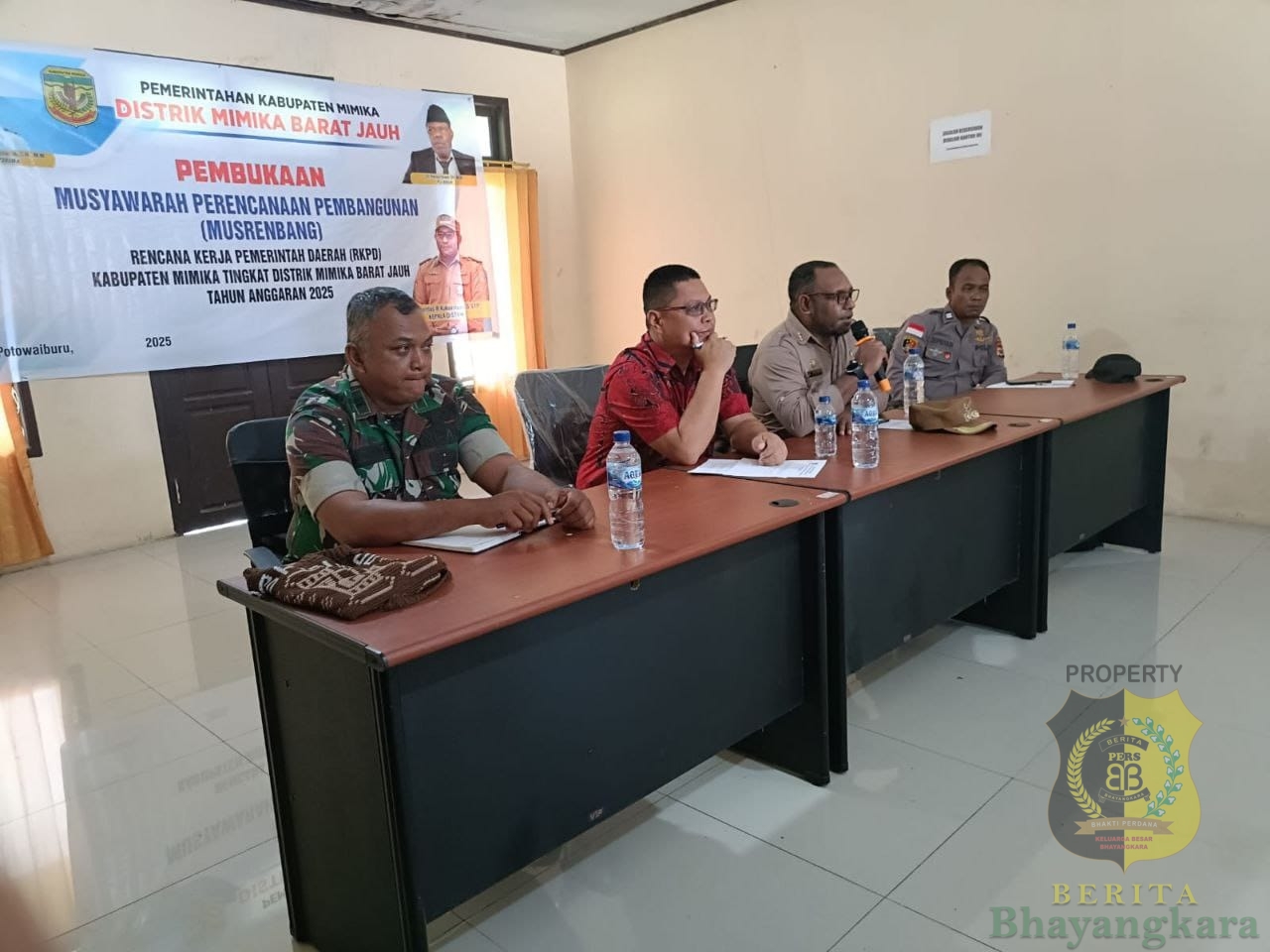 Timika, BeritaBhayangkara – Dalam mendampingi Pemerintah Distrik melaksanakan pembangunan, Koramil 1710-01/Kokonao bersama-sama dengan jajaran melaksanakan musyawarah kepada masyarakat, Senin (24/02/2025). Hal tersebut dilakukan agar rencana pembangunan di wilayah akan senantiasa selaras dengan aspirasi masyarakat. Kegiatan Musrenbang ini dilaksanakan di kantor Distrik Mimika Barat Jauh, Kabupaten Mimika, dipimpin Tim Asistensi Bapeda Mimika dan juga dihadiri Kadistrik Mimika Barat Jauh serta para kepala kampung se-Distrik Mimika Barat Jauh.