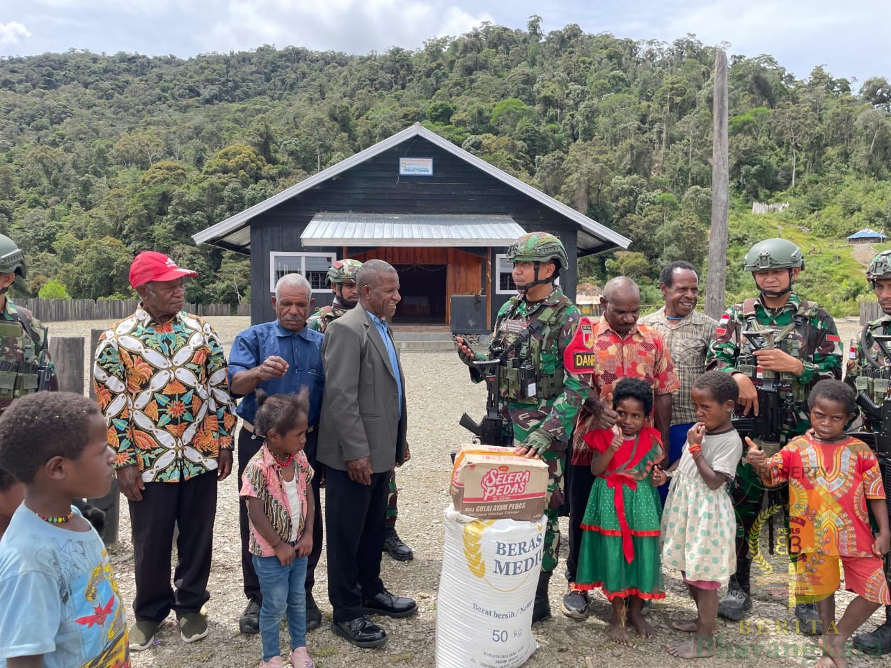 Puncak Jaya, BeritaBhayangkara – Dalam rangka menyambut bulan Suci Ramadhan, Satgas Yonif 715/Mtl terus menebar kebaikan dengan cara menjaga silaturahmi ke tokoh kampung di sekitar Pos Satgas dan berbagi bahan makanan juga melaksanakan pengobatan gratis kepada masyarakat binaan Pos Tirineri, Kamis (06/03/2025).
