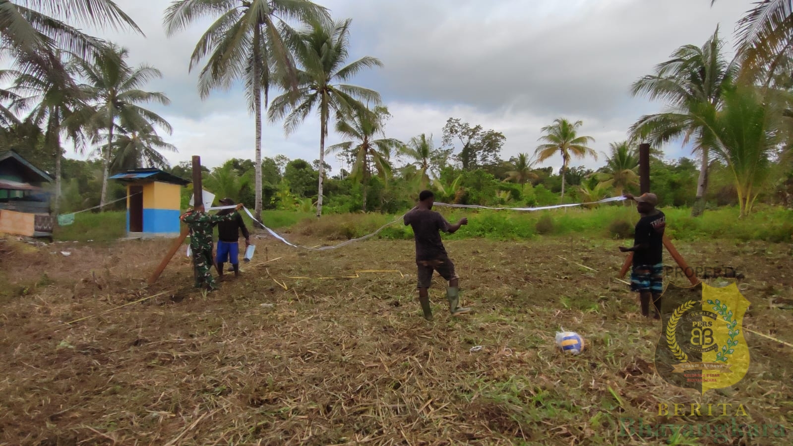 Pembangunan lapangan voli ini dilakukan secara gotong royong bersama warga setempat. Sejak pagi, anggota TNI dan masyarakat tampak antusias bekerja bersama membersihkan rumput, memasang tiang net, serta menyiapkan garis lapangan. Fasilitas ini diharapkan dapat menjadi sarana olahraga dan tempat berkumpulnya warga, terutama generasi muda.