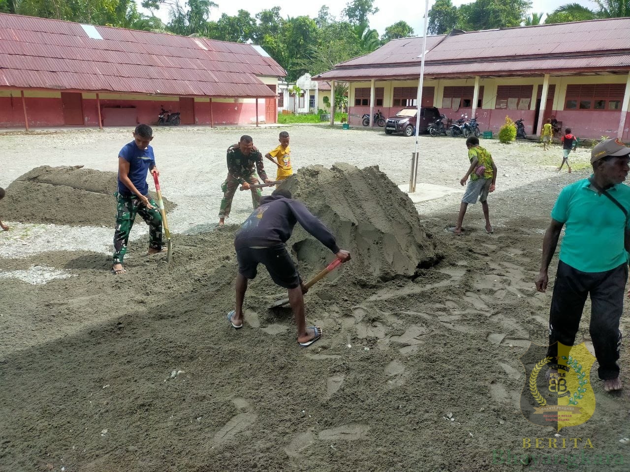Timika, BeritaBhayangkara – Menjelang penutupan kegiatan TNI Manunggal Membangun Desa (TMMD) ke-124 personel Satgas TMMD bersama warga setempat melaksanakan gotong royong menata lapangan dengan menimbun pasir yang akan digunakan sebagai lokasi acara bakti sosial saat penutupan. Kegiatan bakti sosial direncanakan akan digelar di Kampung Pigapu, Distrik Iwaka, Kab. Mimika, Senin (02/6/2025).