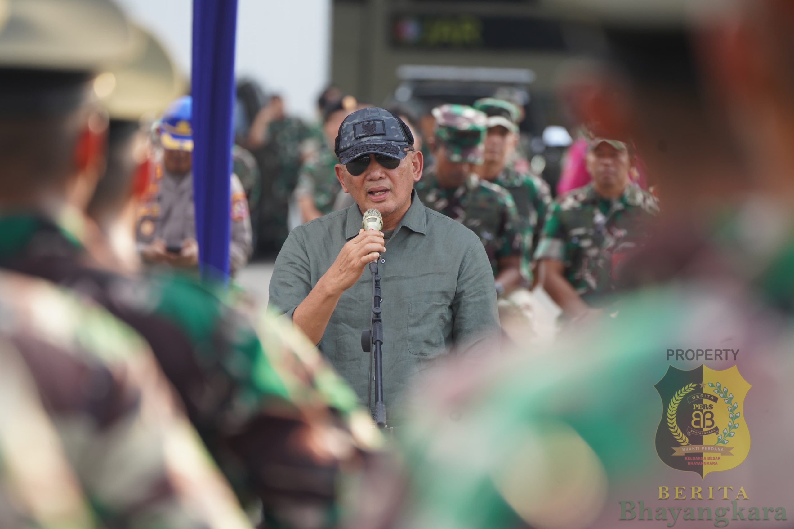 Pada kesempatan tersebut, Panglima TNI bersama Menhan RI berkomunikasi langsung dengan para pasukan dan mengecek perlengkapan serta kesiapan pakaian yang akan digunakan.