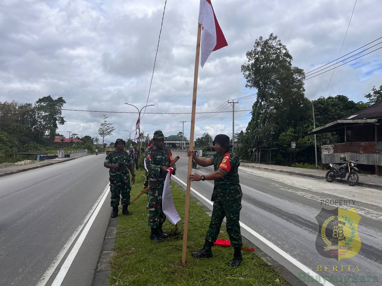 Timika, BeritaBhayangkara – Republik Indonesia sebentar lagi akan memperingati kemerdekaannya yang ke-80 dan untuk menyambut bulan kemerdekaan, Kodim 1710/Mimika melaksanakan pemancangan bendera merah putih di sepanjang jalan, Kamis (31/07/2025). Kegiatan tersebut dilaksanakan di jalan Cenderawasih tepatnya dari Jembatan Selamat Datang hingga Simpang Lima SP2, Distrik Mimika Baru, Kabupaten Mimika.