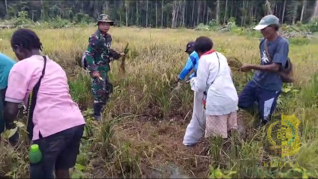 Timika, BeritaBhayangkara – Dalam rangka mendukung ketahanan pangan sekaligus meningkatkan produktivitas pertanian, Pelda Safi’i bersama empat Babinsa Koramil 1710-03/Kuala Kencana Kodim 1710/Mimika, bersama warga Kampung Iwaka dan Dinas Pertanian Kabupaten Mimika, melaksanakan panen padi gogo, Selasa (02/9/2025).