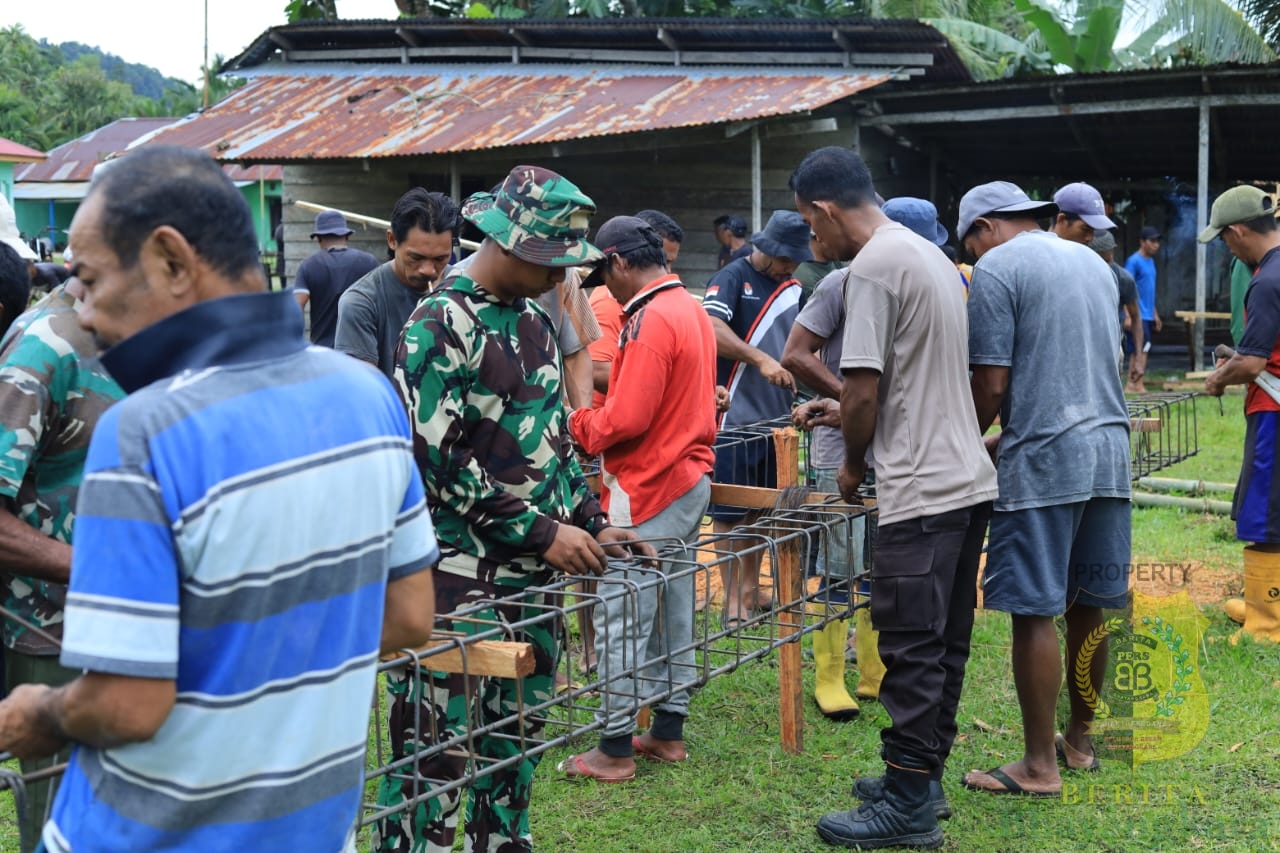 Tidore, BeritaBhayangkara — Semangat kebersamaan dan gotong royong kembali terlihat dalam pelaksanaan TNI Manunggal Membangun Desa (TMMD) ke-126 Kodim 1505/Tidore. Personel Satgas TMMD bersama masyarakat bergotong royong melakukan pemasangan steleng dan rangka besi sebagai persiapan pengecoran tiang Masjid Desa Lifofa, Kecamatan Oba Selatan, Kota Tidore Kepulauan, Sabtu (11/10/2025).