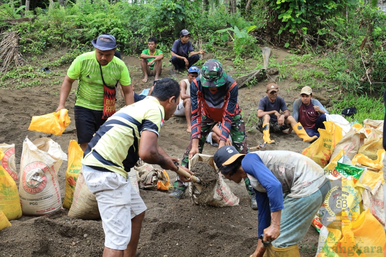 Kegiatan pengambilan pasir ini juga menjadi bukti nyata semangat gotong royong antara TNI dan masyarakat. Warga tampak antusias membantu personel Satgas mengangkut material dengan menggunakan karung, menunjukkan kekompakan dan kebersamaan dalam mendukung suksesnya program TMMD ke-126 di wilayah mereka.