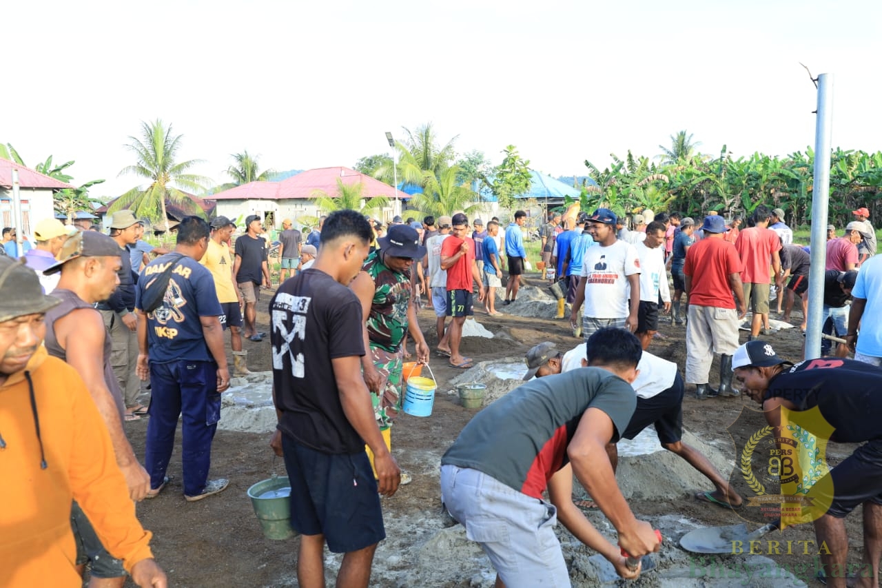 Tidore, BeritaBhayangkara – Personel Satgas TNI Manunggal Membangun Desa (TMMD) ke-126 Kodim 1505/Tidore bersama masyaraka terus menggenjot proses pengecoran lantai lapangan voli Desa Wama, Kecamatan Oba Selatan, Kota Tidore Kepulauan, Rabu (29/10/2025). Kegiatan ini merupakan salah satu sasaran fisik dalam program TMMD yang bertujuan meningkatkan sarana olahraga dan mempererat kebersamaan antara TNI dan rakyat.