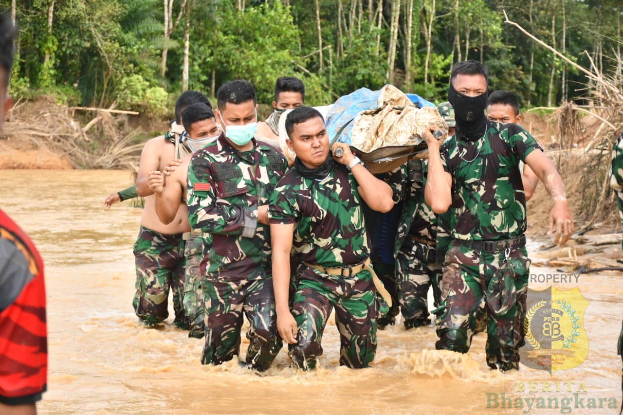 Proses evakuasi dilakukan di tengah kondisi medan yang menantang, dengan banyaknya material kayu, lumpur, serta akses yang terputus. Mengedepankan kemanusiaan dan kecepatan penanganan, prajurit TNI bersama masyarakat sekitar bergotong-royong mengevakuasi jenazah ke titik aman sebelum diserahkan kepada pihak keluarga.