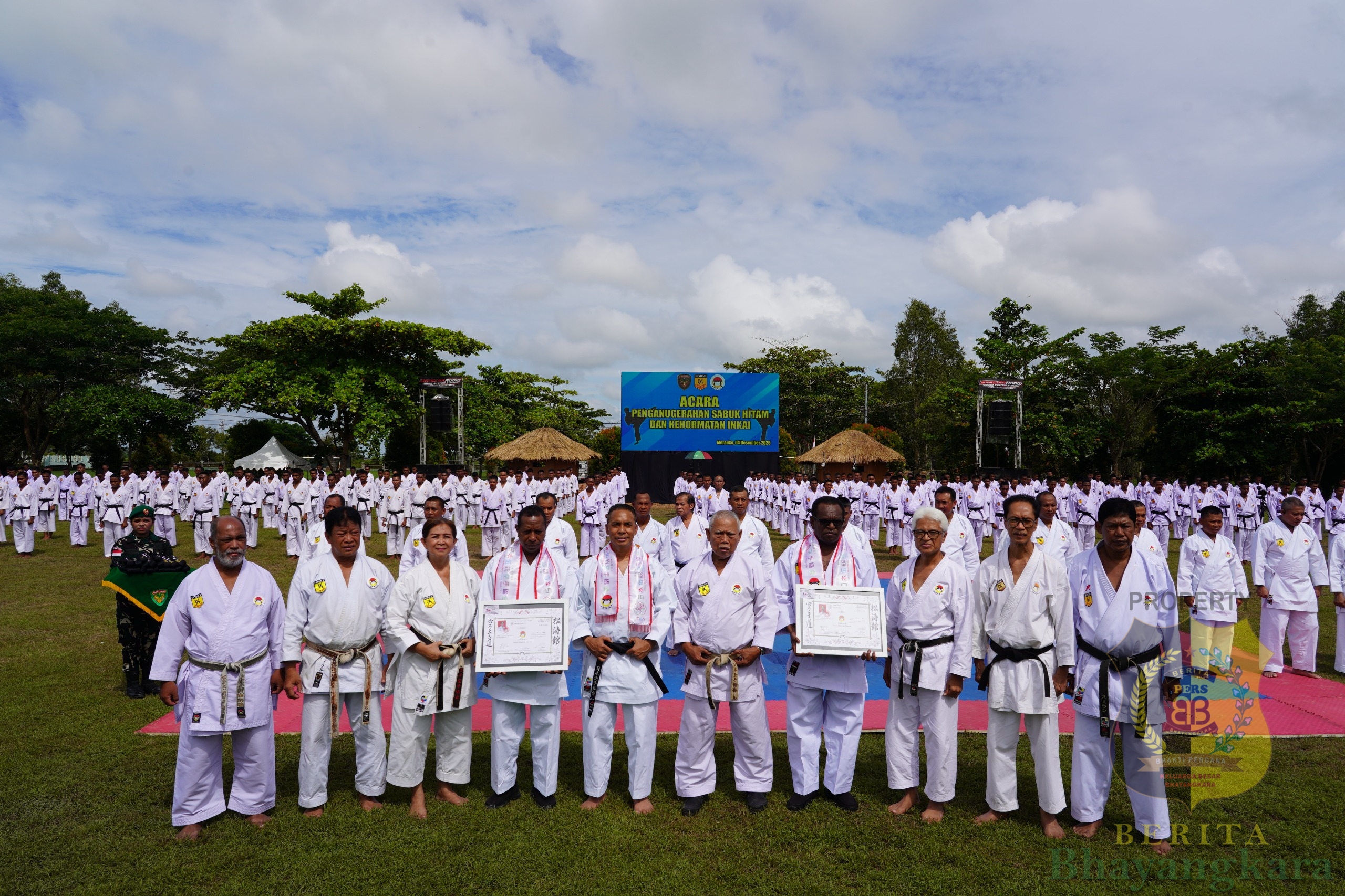 Merauke, BeritaBhayangkara – Pangdam XXIV/Mandala Trikora Mayjen TNI Lucky Avianto memimpin pengukuhan 1.683 prajurit sebagai pemegang Sabuk Hitam INKAI sekaligus mencatatkan rekor MURI (Museum Rekor Indonesia) sebagai Ujian Karate Sabuk Hitam dengan Peserta Prajurit Terbanyak. Kegiatan digelar di Lapangan Upacara Kodam XXIV/MT, Jl. Poros Tanah Miring, Merauke, Kamis (4/12/2025).