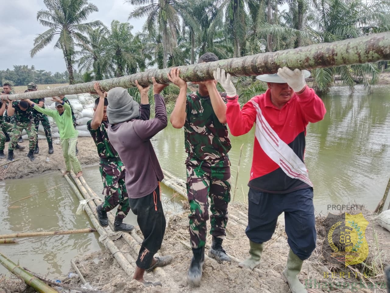 Langkat, BeritaBhayangkara – Koramil 07/Stabat, Kodim 0203/Langkat, bersama warga Desa Stabat Lama, Kecamatan Wampu, Kabupaten Langkat, melaksanakan perbaikan tanggul yang kembali jebol akibat hujan deras, Minggu (14/12/2025). Perbaikan tersebut dilakukan sebagai langkah antisipasi untuk mencegah terjadinya banjir susulan pasca banjir yang melanda wilayah tersebut beberapa hari sebelumnya.
