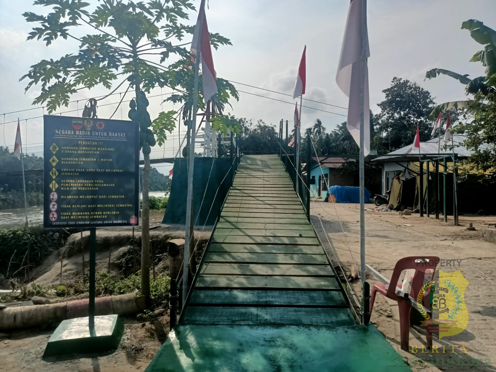 TNI melalui Satgas Gulbencal Kodam I/Bukit Barisan berhasil merampungkan renovasi Jembatan Gantung Garuda