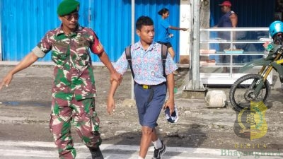 Timika, BeritaBhayangkara – Wujud kepedulian terhadap keselamatan generasi muda ditunjukkan oleh Babinsa Koramil 1710-02/Timika, Sertu…
