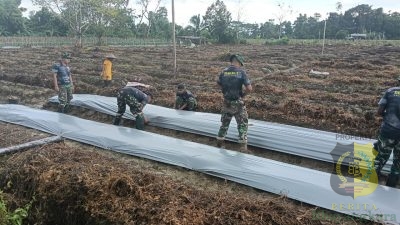 Timika, BeritaBhayangkara – Personel Satgas TMMD 124 Kodim 1710/Mimika bersama warga dari Kelompok Tani (Poktan)…